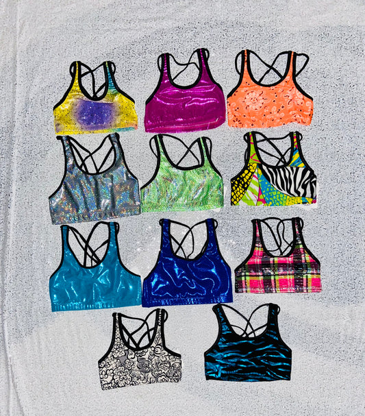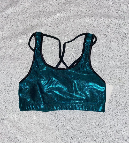 Youth Crop Top--Turquoise and Black Zebra Stripes